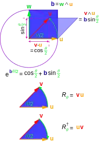A -versor is a multivector that can be expressed as the geometric product of invertible vectors.[lower-alpha 7][21] Unit quaternions (originally called versors by Hamilton) may be identified with rotors in 3D space in much the same way as real 2D rotors subsume complex numbers; for the details refer to Dorst.[22]