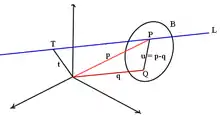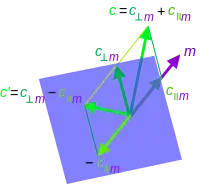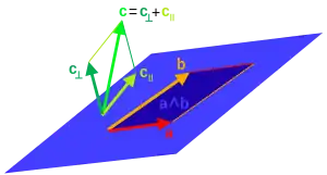 The regressive product is the dual of the exterior product (respectively corresponding to the "meet" and "join" in this context).[lower-alpha 9] The dual specification of elements permits, for blades and , the intersection (or meet) where the duality is to be taken relative to the a blade containing both and (the smallest such blade being the join).[27]