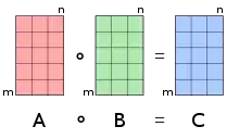 In mathematics, the Hadamard product (also known as the element-wise product, entrywise product[1]: ch. 5 or Schur product[2]) is a binary operation that takes in two matrices of the same dimensions and returns a matrix of the multiplied corresponding elements. This operation can be thought as a "naive matrix multiplication" and is different from the matrix product. It is attributed to, and named after, either French mathematician Jacques Hadamard or German mathematician Issai Schur.