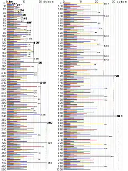 | Note: Numbers in bold are themselves highly composite numbers. Only the twentieth highly composite number 7560 (= 3 × 2520) is absent. 10080 is a so-called 7-smooth number (sequence A002473 in the OEIS). | |||||