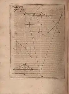 Johannes Kepler's work Stereometrica Doliorum published in 1615 formed the basis of integral calculus.[18] Kepler developed a method to calculate the area of an ellipse by adding up the lengths of many radii drawn from a focus of the ellipse.[19]