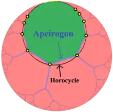 However, in hyperbolic geometry, a regular apeirogon or pseudogon has sides of any length (i.e., it remains a polygon with noticeable sides).