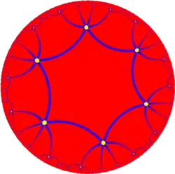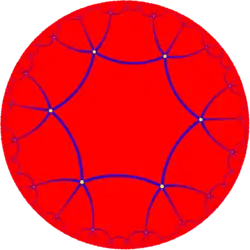 In hyperbolic geometry, a uniform hyperbolic tiling (or regular, quasiregular or semiregular hyperbolic tiling) is an edge-to-edge filling of the hyperbolic plane which has regular polygons as faces and is vertex-transitive (transitive on its vertices, isogonal, i.e. there is an isometry mapping any vertex onto any other). It follows that all vertices are congruent, and the tiling has a high degree of rotational and translational symmetry.