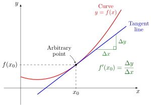 Geometrically, the derivative is the slope of the tangent line to the graph of f at a. The tangent line is a limit of secant lines just as the derivative is a limit of difference quotients. For this reason, the derivative is sometimes called the slope of the function f.[46]: 61–63