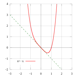 For example, the graph of the differentiable function has an inflection point at (x, f(x)) if and only if its first derivative f' has an isolated extremum at x. (this is not the same as saying that f has an extremum). That is, in some neighborhood, x is the one and only point at which f' has a (local) minimum or maximum. If all extrema of f' are isolated, then an inflection point is a point on the graph of f at which the tangent crosses the curve.
