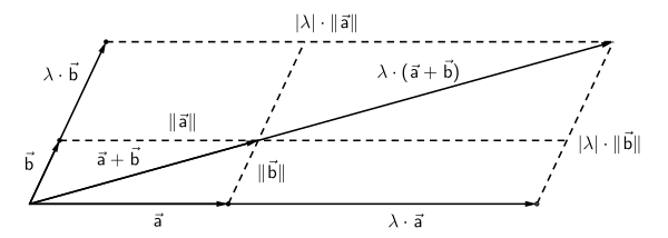 In a normed vector space, the axioms concerning the scalar multiplication (in particular and ) ensure that the intercept theorem holds. One has