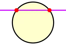There can be more than one primitive object, such as points (pictured above), that form an intersection. The intersection can be viewed collectively as all of the shared objects (i.e., the intersection operation results in a set, possibly empty), or as several intersection objects (possibly zero).