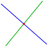 In geometry, an intersection is a point, line, or curve common to two or more objects (such as lines, curves, planes, and surfaces). The simplest case in Euclidean geometry is the line–line intersection between two distinct lines, which either is one point (sometimes called a vertex) or does not exist (if the lines are parallel). Other types of geometric intersection include: