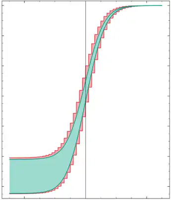 Interval arithmetic can also be used with affiliation functions for fuzzy quantities as they are used in fuzzy logic. Apart from the strict statements and , intermediate values are also possible, to which real numbers are assigned. corresponds to definite membership while is non-membership. A distribution function assigns uncertainty, which can be understood as a further interval.
