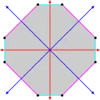 ![]() Isogonal convex octagon with blue and red radial lines of reflection |