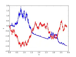 where H is a locally square-integrable process adapted to the filtration generated by X (Revuz & Yor 1999, Chapter IV), which is a Brownian motion or, more generally, a semimartingale. The result of the integration is then another stochastic process. Concretely, the integral from 0 to any particular t is a random variable, defined as a limit of a certain sequence of random variables. The paths of Brownian motion fail to satisfy the requirements to be able to apply the standard techniques of calculus. So with the integrand a stochastic process, the Itô stochastic integral amounts to an integral with respect to a function which is not differentiable at any point and has infinite variation over every time interval. The main insight is that the integral can be defined as long as the integrand H is adapted, which loosely speaking means that its value at time t can only depend on information available up until this time. Roughly speaking, one chooses a sequence of partitions of the interval from 0 to t and constructs Riemann sums. Every time we are computing a Riemann sum, we are using a particular instantiation of the integrator. It is crucial which point in each of the small intervals is used to compute the value of the function. The limit then is taken in probability as the mesh of the partition is going to zero. Numerous technical details have to be taken care of to show that this limit exists and is independent of the particular sequence of partitions. Typically, the left end of the interval is used.