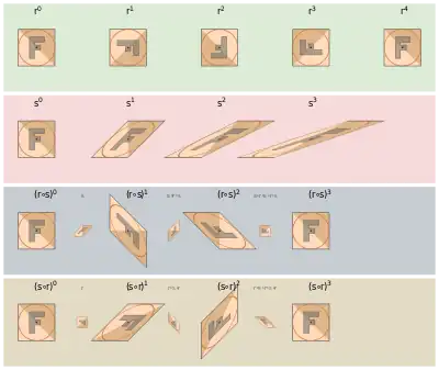On top is a clockwise rotation by 90°. It has order 4, because that is the smallest positive exponent that produces the identity. Below is a shear mapping with infinite order.