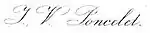 As a mathematician, his most notable work was in projective geometry, although an early collaboration with Charles Julien Brianchon provided a significant contribution to Feuerbach's theorem. He also made discoveries about projective harmonic conjugates; relating these to the poles and polar lines associated with conic sections. He developed the concept of parallel lines meeting at a point at infinity and defined the circular points at infinity that are on every circle of the plane. These discoveries led to the principle of duality, and the principle of continuity and also aided in the development of complex numbers.[3]