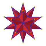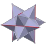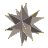 can be seen as a regular and a great dodecahedron with their edges and faces extended until they intersect.