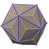 The table below shows orthographic projections from the 5-fold (red), 3-fold (yellow) and 2-fold (blue) symmetry axes.