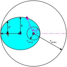 The semi-latus rectum p is the harmonic mean between rmin and rmax: