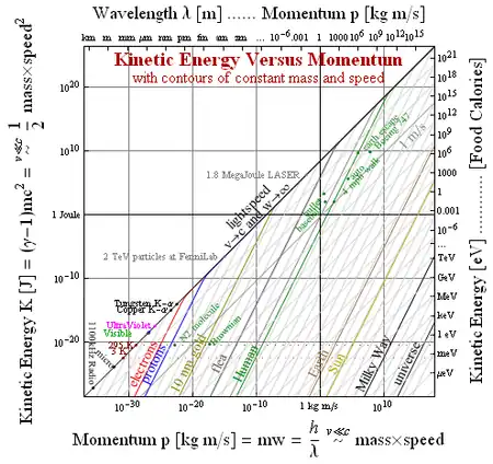 In classical mechanics, the kinetic energy of a non-rotating object of mass m traveling at a speed v is .[2]