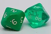 The trapezohedra are another family of polyhedra that have congruent kite-shaped faces. In these polyhedra, the edges of one of the two side lengths of the kite meet at two "pole" vertices, while the edges of the other length form an equatorial zigzag path around the polyhedron. They are the dual polyhedra of the uniform antiprisms.[36] A commonly seen example is the pentagonal trapezohedron, used for ten-sided dice.[16]