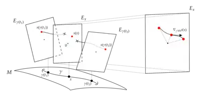 1. (Parallel transport) A connection can be viewed as assigning to every differentiable path a linear isomorphism for all Using this isomorphism one can transport to the fibre and then take the difference; explicitly,