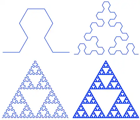 - median space-filling curves (Lévy C curve, Harter-Heighway dragon curve, Davis-Knuth terdragon),