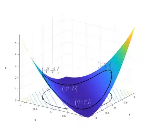The solution corresponding to the original constrained optimization is always a saddle point of the Lagrangian function,[4][5] which can be identified among the stationary points from the definiteness of the bordered Hessian matrix.[6]