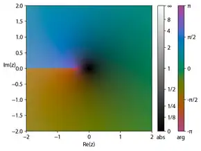 The range plot above also delineates the regions in the complex plane where the simple inverse relationship is true. implies that there exists an such that , where depends upon the value of . The value of the integer changes abruptly when is at the branch cut of , which means that ≤ 0, except for where it is ≤ −1/.