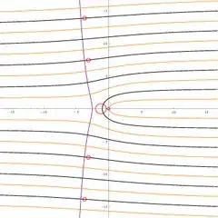 The branch point for the principal branch is at z = −1/e, with a branch cut that extends to −∞ along the negative real axis. This branch cut separates the principal branch from the two branches W−1 and W1. In all branches Wk with k ≠ 0, there is a branch point at z = 0 and a branch cut along the entire negative real axis.