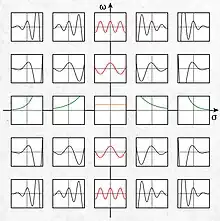 | Second derivative | f is assumed twice differentiable and the second derivative to be of exponential type. Follows by applying the Differentiation property to f′(t). | ||