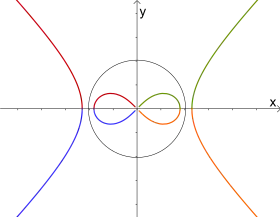 In geometry, the lemniscate of Bernoulli is a plane curve defined from two given points F1 and F2, known as foci, at distance 2c from each other as the locus of points P so that PF1·PF2 = c2. The curve has a shape similar to the numeral 8 and to the ∞ symbol. Its name is from lemniscatus, which is Latin for "decorated with hanging ribbons". It is a special case of the Cassini oval and is a rational algebraic curve of degree 4.