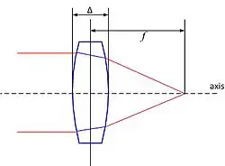 With the lens as depicted in the figure, and the refractive index denoted as n, the result is[5]