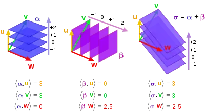 A linear functional belonging to the dual space can be expressed as a linear combination of basis functionals, with coefficients ("components") ui,