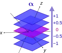 In finite dimensions, a linear functional can be visualized in terms of its level sets, the sets of vectors which map to a given value. In three dimensions, the level sets of a linear functional are a family of mutually parallel planes; in higher dimensions, they are parallel hyperplanes. This method of visualizing linear functionals is sometimes introduced in general relativity texts, such as Gravitation by Misner, Thorne & Wheeler (1973).