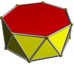 | Octagonal antiprism | ![]() | ![]() 3.3.3.8 | | 2 2 8 | D8d | C34e | — | U77e | K02e | 16 | 32 | 18 | 16{3} +2{8} |