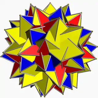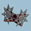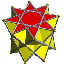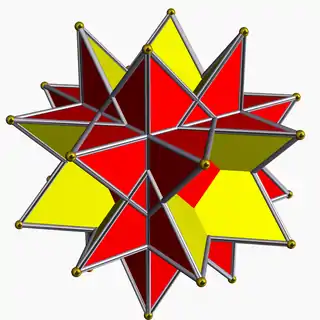 | Great stellated dodecahedron | ![]() | 3 | 2 5/2 | ![]() (5/2)3 | Ih | C68 | W022 | U52 | K57 | 20 | 30 | 12 | 2 | Yes | 7 | 12{5/2} |