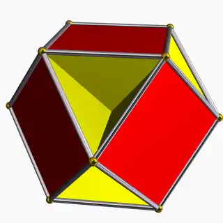 | Small cubicuboctahedron | ![]() | 3/2 4 | 4 | ![]() 8.3/2.8.4 | Oh | C38 | W069 | U13 | K18 | 24 | 48 | 20 | −4 | Yes | 2 | 8{3}+6{4}+6{8} |
