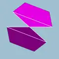 | Triangular prism | ![]() | ![]() 3.4.4 | 2 3 | 2 | D3h | C33a | — | U76a | K01a | 6 | 9 | 5 | 2{3} +3{4} |