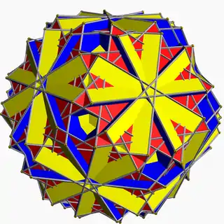 | Great icosicosi- dodecahedron | ![]() | 3/2 5 | 3 | ![]() 6.3/2.6.5 | Ih | C62 | W088 | U48 | K53 | 60 | 120 | 52 | −8 | Yes | 6 | 20{3}+12{5}+20{6} |