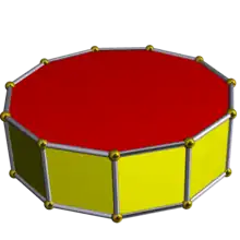 | Dodecagonal prism | ![]() | 4.4.12 | 2 12 | 2 | D12h | C33i | — | U76i | K01i | 24 | 36 | 14 | 12{4} +2{12} |