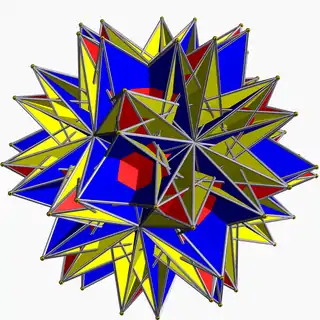 | Great stellated truncated dodecahedron | ![]() | 2 3 | 5/3 | ![]() 10/3.10/3.3 | Ih | C83 | W104 | U66 | K71 | 60 | 90 | 32 | 2 | Yes | 13 | 20{3}+12{10/3} |
