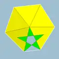 | Small dodecicosi- dodecahedron | ![]() | 3/2 5 | 5 | ![]() 10.3/2.10.5 | Ih | C42 | W072 | U33 | K38 | 60 | 120 | 44 | −16 | Yes | 2 | 20{3}+12{5}+12{10} |