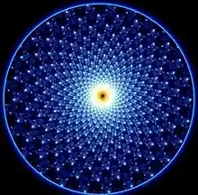 Already at the end of the 1970s, applications for the discrete spiral coordinate system were given in image analysis ( image registration ) . To represent an image in this coordinate system rather than in Cartesian coordinates, gives computational advantages when rotating or zooming in an image. Also, the photo receptors in the retina in the human eye are distributed in a way that has big similarities with the spiral coordinate system.[2] It can also be found in the Mandelbrot fractal (see picture to the right).