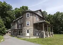 In 1887, Peirce spent part of his inheritance from his parents to buy 2,000 acres (8 km2) of rural land near Milford, Pennsylvania, which never yielded an economic return.[49] There he had an 1854 farmhouse remodeled to his design.[50] The Peirces named the property "Arisbe". There they lived with few interruptions for the rest of their lives,[51] Charles writing prolifically, with much of his work remaining unpublished to this day (see Works). Living beyond their means soon led to grave financial and legal difficulties.[52] Charles spent much of his last two decades unable to afford heat in winter and subsisting on old bread donated by the local baker. Unable to afford new stationery, he wrote on the verso side of old manuscripts. An outstanding warrant for assault and unpaid debts led to his being a fugitive in New York City for a while.[53] Several people, including his brother James Mills Peirce[54] and his neighbors, relatives of Gifford Pinchot, settled his debts and paid his property taxes and mortgage.[55]