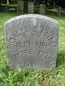 Peirce died destitute in Milford, Pennsylvania, twenty years before his widow. Juliette Peirce kept the urn with Peirce's ashes at Arisbe. In 1934, Pennsylvania Governor Gifford Pinchot arranged for Juliette's burial in Milford Cemetery. The urn with Peirce's ashes was interred with Juliette.[65]