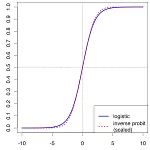 In statistics, the logistic model (or logit model) is a statistical model that models the log-odds of an event as a linear combination of one or more independent variables. In regression analysis, logistic regression[1] (or logit regression) is estimating the parameters of a logistic model (the coefficients in the linear combination). Formally, in binary logistic regression there is a single binary dependent variable, coded by an indicator variable, where the two values are labeled "0" and "1", while the independent variables can each be a binary variable (two classes, coded by an indicator variable) or a continuous variable (any real value). The corresponding probability of the value labeled "1" can vary between 0 (certainly the value "0") and 1 (certainly the value "1"), hence the labeling;[2] the function that converts log-odds to probability is the logistic function, hence the name. The unit of measurement for the log-odds scale is called a logit, from logistic unit, hence the alternative names. See § Background and § Definition for formal mathematics, and § Example for a worked example.