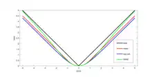 Two very commonly used loss functions are the squared loss, , and the absolute loss, . However the absolute loss has the disadvantage that it is not differentiable at . The squared loss has the disadvantage that it has the tendency to be dominated by outliers—when summing over a set of 's (as in ), the final sum tends to be the result of a few particularly large a-values, rather than an expression of the average a-value.