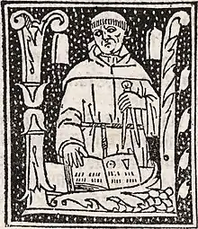 Fra. Luca Bartolomeo de Pacioli (sometimes Paccioli or Paciolo; c. 1447 – 19 June 1517)[3] was an Italian mathematician, Franciscan friar, collaborator with Leonardo da Vinci, and an early contributor to the field now known as accounting. He is referred to as the father of accounting and bookkeeping and he was the first person to publish a work on the double-entry system of book-keeping on the continent.[4][lower-alpha 1] He was also called Luca di Borgo after his birthplace, Borgo Sansepolcro, Tuscany.