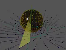 Borrowing terminology from special relativity, points with Q > 0 are considered timelike; in addition, if x0 > 0, then the point is called future-pointing. Points with Q < 0 are called spacelike. The null cone S consists of those points where Q = 0; the future null cone N+ are those points on the null cone with x0 > 0. The celestial sphere is then identified with the collection of rays in N+ whose initial point is the origin of R4. The collection of linear transformations on R4 with positive determinant preserving the quadratic form Q and preserving the time direction form the restricted Lorentz group SO+(1, 3).