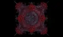 • In the webcomic Unsounded the spirit realm of the khert is represented by a stylized golden mandelbulb.