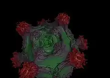 • In the 2018 science fiction horror film Annihilation, an extraterrestrial being appears in the form of a partial Mandelbulb.[4]