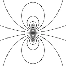 Gauss's law for magnetism states that electric charges have no magnetic analogues, called magnetic monopoles; no north or south magnetic poles exist in isolation.[3] Instead, the magnetic field of a material is attributed to a dipole, and the net outflow of the magnetic field through a closed surface is zero. Magnetic dipoles may be represented as loops of current or inseparable pairs of equal and opposite "magnetic charges". Precisely, the total magnetic flux through a Gaussian surface is zero, and the magnetic field is a solenoidal vector field.[note 3]
